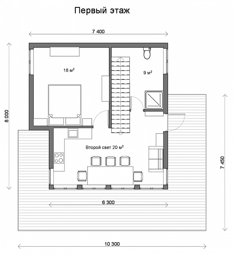 Простота форм – коробка в виде вытянутого прямоугольника, двускатная крыша, минималные свесы. Жесткий каркас из опорных клееных балок. Второй свет на всей протяженности или в одной из торцевых частей. Панорамное остекление, максимум свободного пространств.